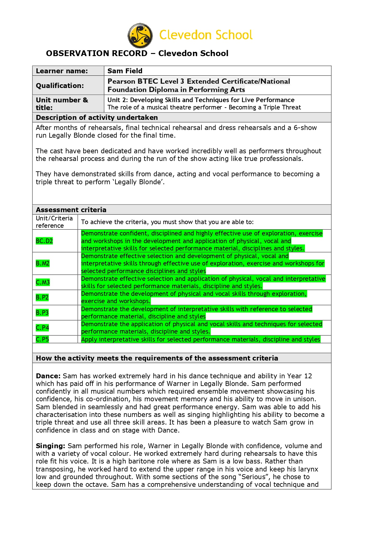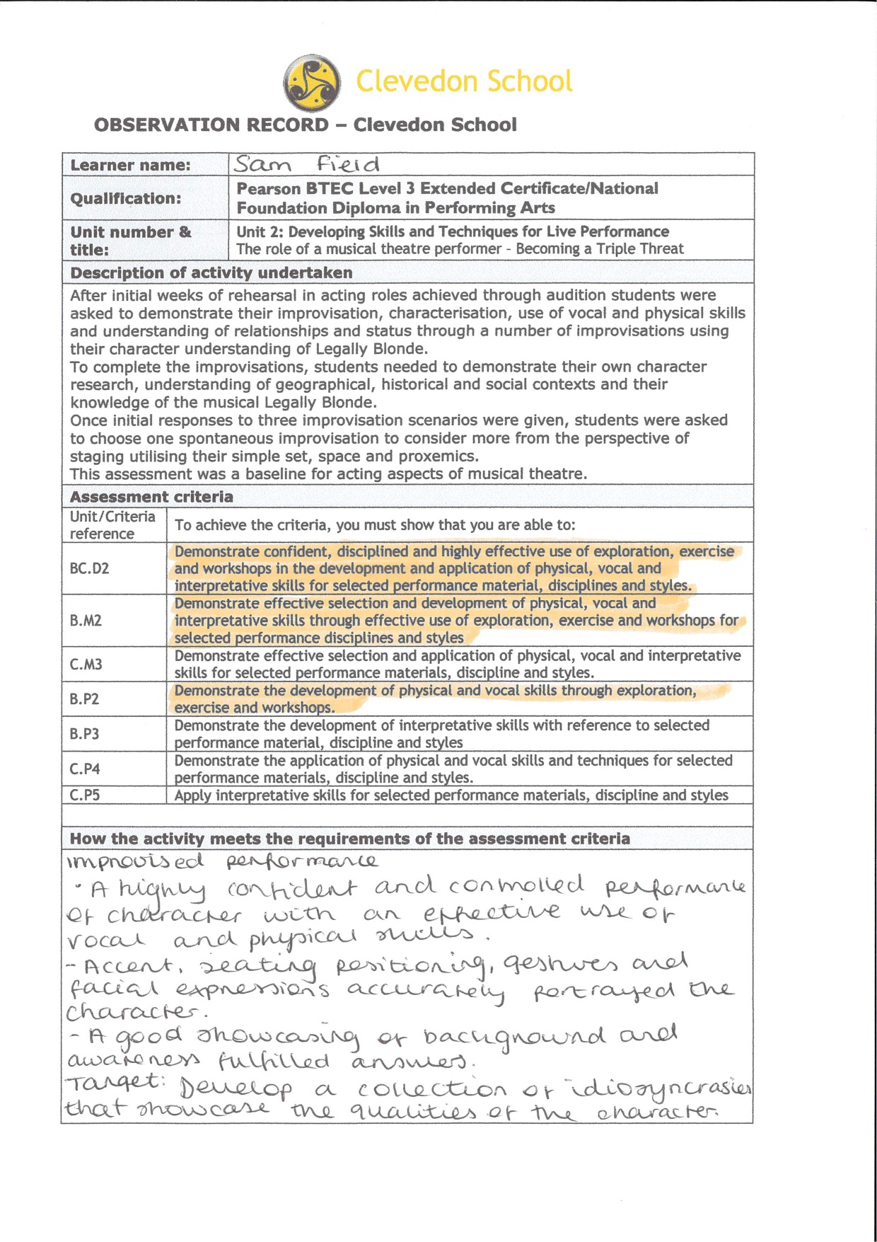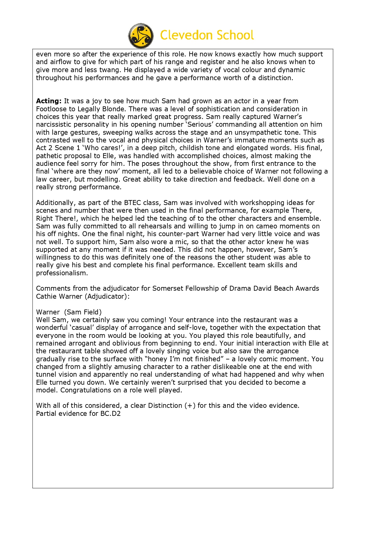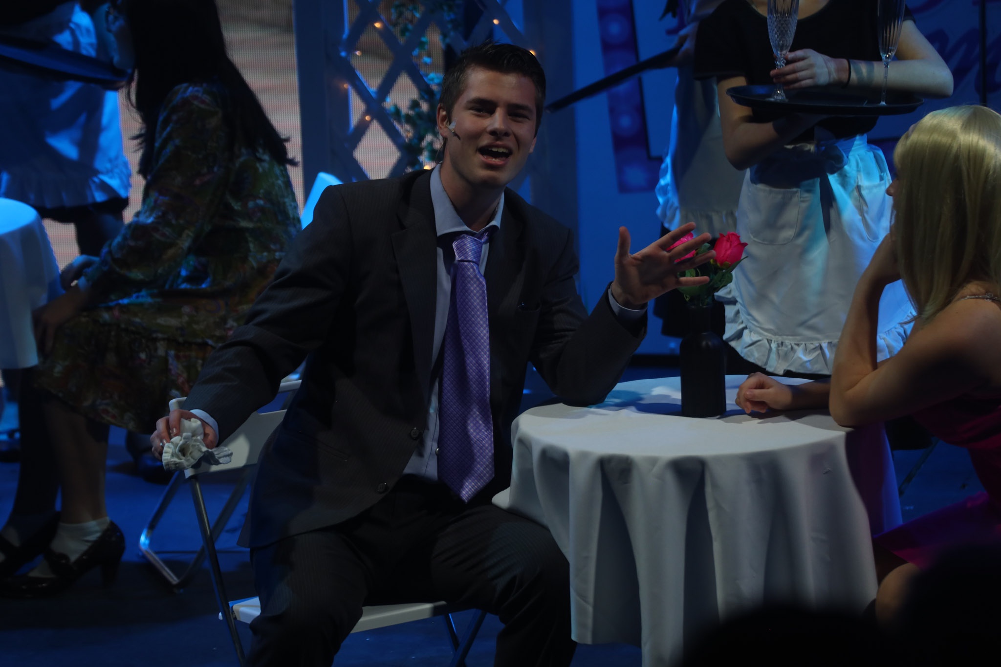 "Well Sam, we certainly saw you coming! Your entrance into the restaurant was a wonderful 'casual' display of arrogance and self-love, together with the expectation that everyone in the room would be looking at you. You played this role beautifully, and remained arrogant and oblivious from beginning to end. Your initial interaction with Elle at the restaurant table showed off a lovely singing voice but also saw the arrogance gradually rise to the surface with 'honey I'm not finished' - a lovely comic moment. You changed from a slightly amusing character to a rather dislikable one at the end with tunnel vision and apparently no real understanding of what had happened and why when Elle turned you down. We certainly weren't surprised that you decided to become a model. Congratulations on a role well played."