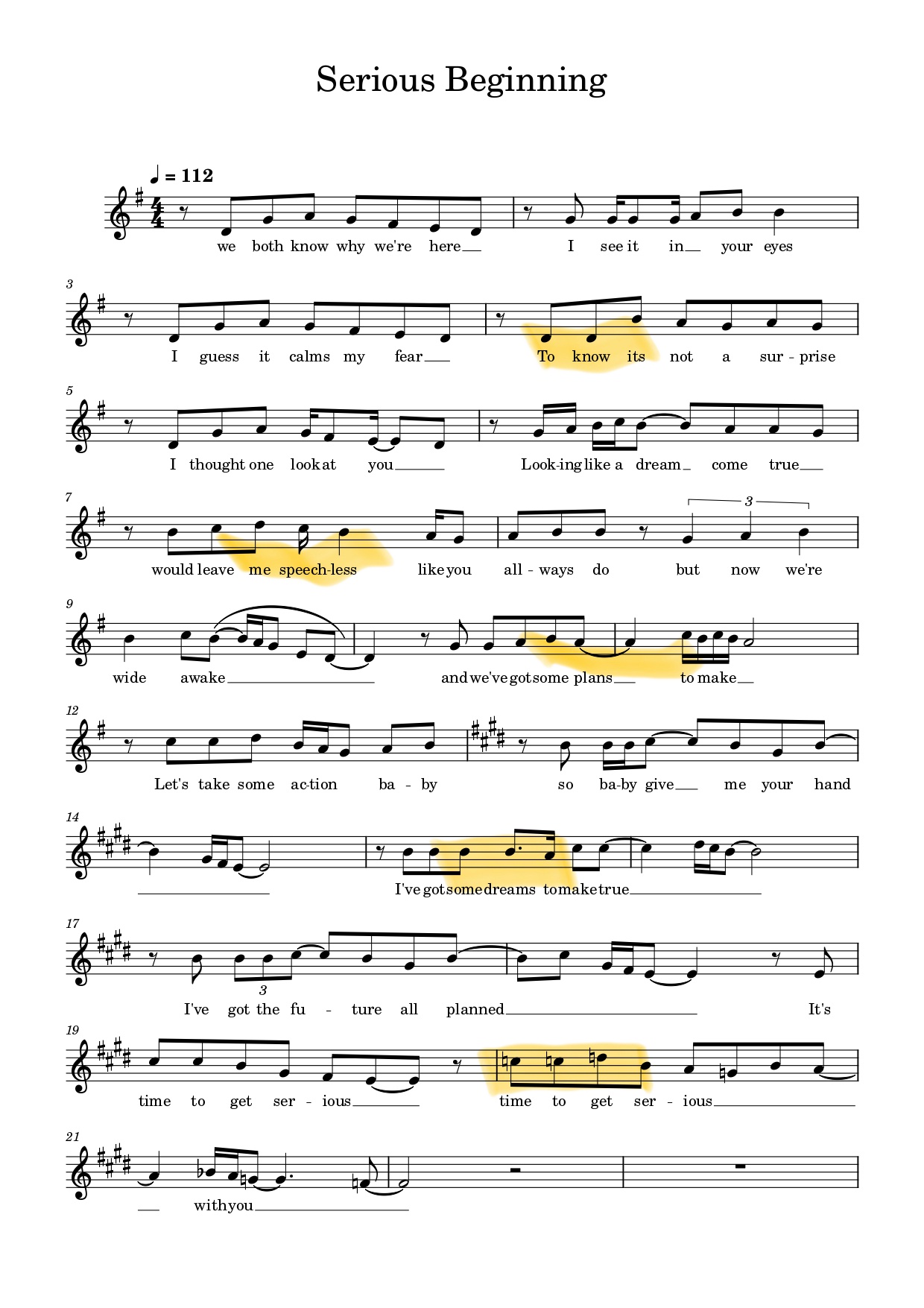The singing was a huge challenge. My song, Serious, was not only technically difficult, but it was also out of my range. The song was written in eight different keys with varying tempos, making it particularly demanding both musically and vocally. Additionally, some sections required sustained high notes that were challenging for my vocal capabilities. Since part of the song was beyond my range, I explored several options: singing with octave jumps, using falsetto, or requesting a transposition. However, falsetto and octave jumps are musical pet peeves of mine, as they often sound unnatural for a character-driven performance. Because of this, I advocated for a transposition, requesting the song to be raised by five semitones to better suit my voice. Unfortunately, due to the complexity of the arrangement and the number of instrumental parts involved, rewriting and relearning the song would have been too difficult for the band, leading the musical director to deny my request. As a result, I had to compromise and accept the use of octave jumps. Determined to minimise their impact, I took the initiative to recompose some of the high parts of the song, making subtle melodic adjustments while ensuring the integrity of the piece remained intact.